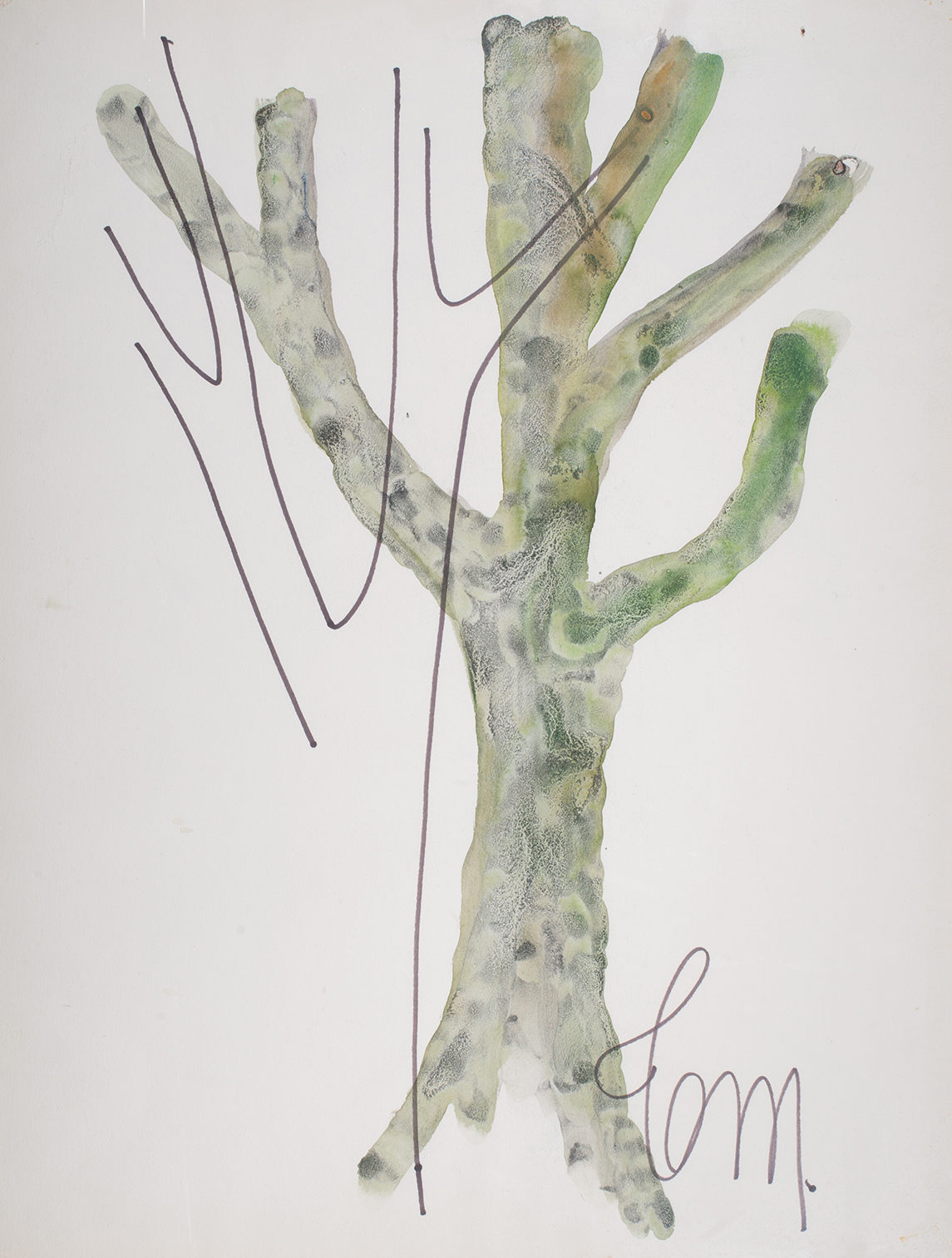 « sculptés » à l’aquarelle suivant une technique bien personnelle du peintre. Parfois l’artiste abandonne la couleur et colle sur la feuille de papier ou des morceaux d’écorce qui s’ajustent comme par magie aux silhouettes dessinées au pinceau » écrit Jean Ayme. Il laisse derrière lui un nombre impressionnant d’études, de croquis et de dessins pour des fresques, des vitraux, des toiles… jamais réalisés faute de moyens.